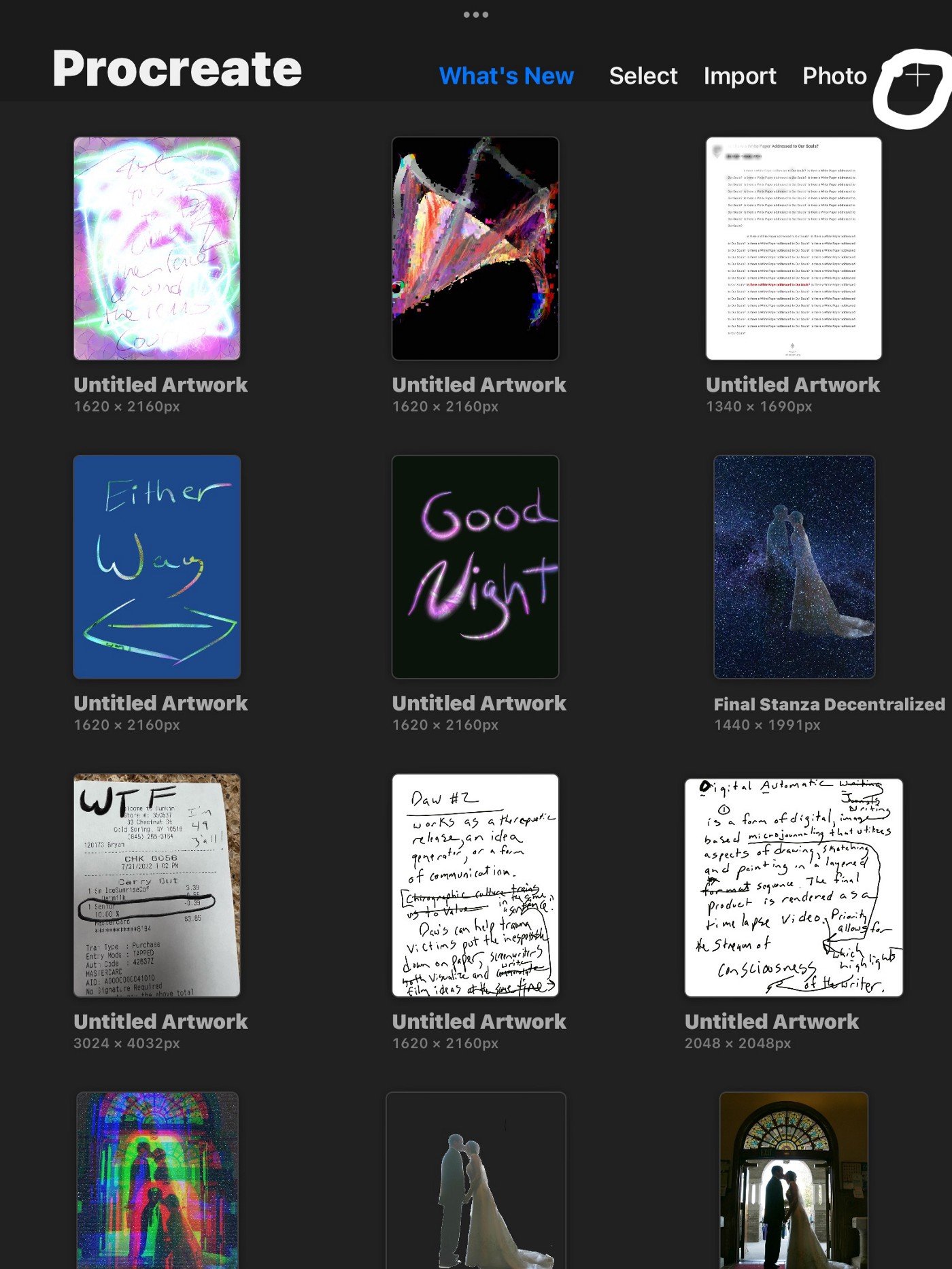 To begin, open Procreate and tap the "+" sign in the top right corner: