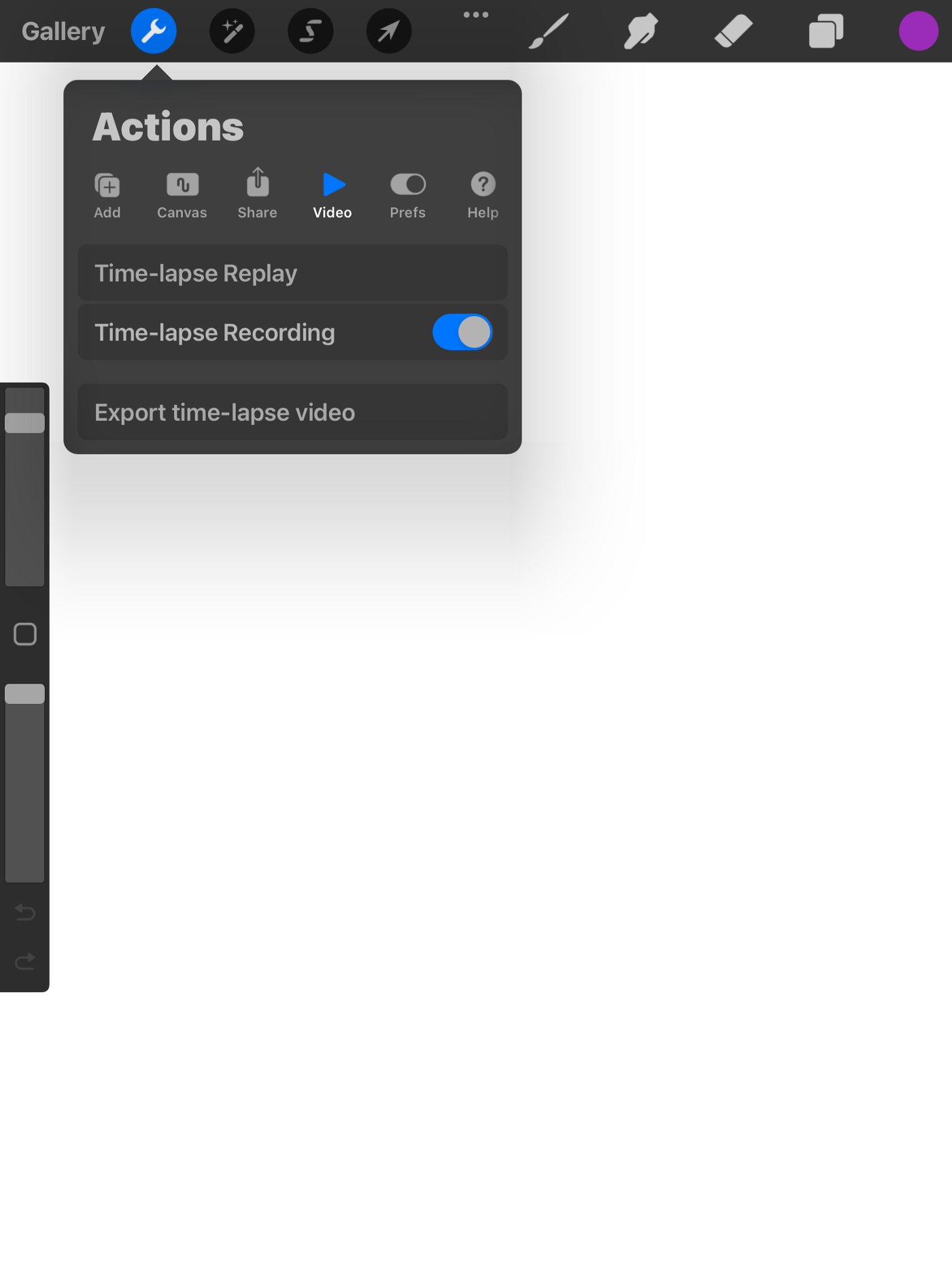 Procreate is an unbelievable app. In addition to giving you multiple sophisticated design tools (for $10), the app automatically records your work as a time-lapse video. You can access this feature by tapping the "Actions" tool in the upper left-hand corner of the app: